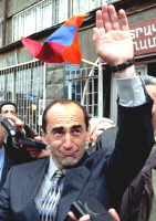 로베르트 코차리안 아르메니아 총리(43)가 1998년 3월 30일 구공산당 서기장 출신인 카렌 데미르치안 후보(65)를 누르..