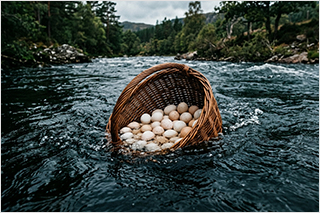 바구니는 강에 풍덩 빠져 사라져 버렸습니다.